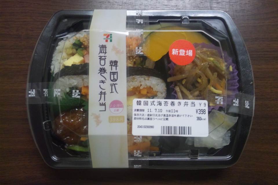 今、セブンイレブンでセブンイレブンフェアが開催され、少女時代公認の「韓国風海苔巻き弁当」が店頭に並んでいます。